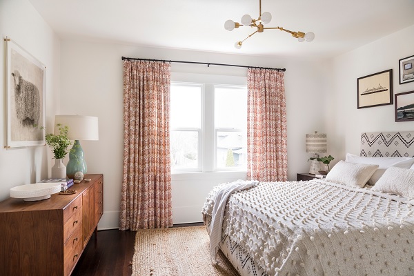 Tuy nhiên, cửa sổ lệch tâm đòi hỏi giải pháp sáng tạo hơn. Hãy cân nhắc việc kéo rèm ra ngoài khung cửa sổ để tạo ảo giác cửa sổ nằm ở giữa, hoặc cân bằng lại không gian bằng cách đặt giường hoặc 1 tác phẩm nghệ thuật lớn đối diện giường ngủ.